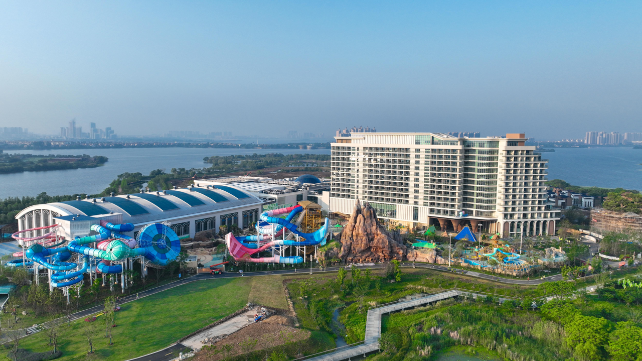 目前,项目2.8万㎡室内外水乐园、酒店室内外装修、特色配套设施已全部完成,现场工作人员正加紧推进设备调试及承压测试,为6月13日开园迎客做着最后的冲刺准备。届时,这座由金沙检测线路js990投资22亿元、总建筑面积11.8万平方米的“度假王国”,将成为华中地区最大的全天候、全季节玩水乐园。