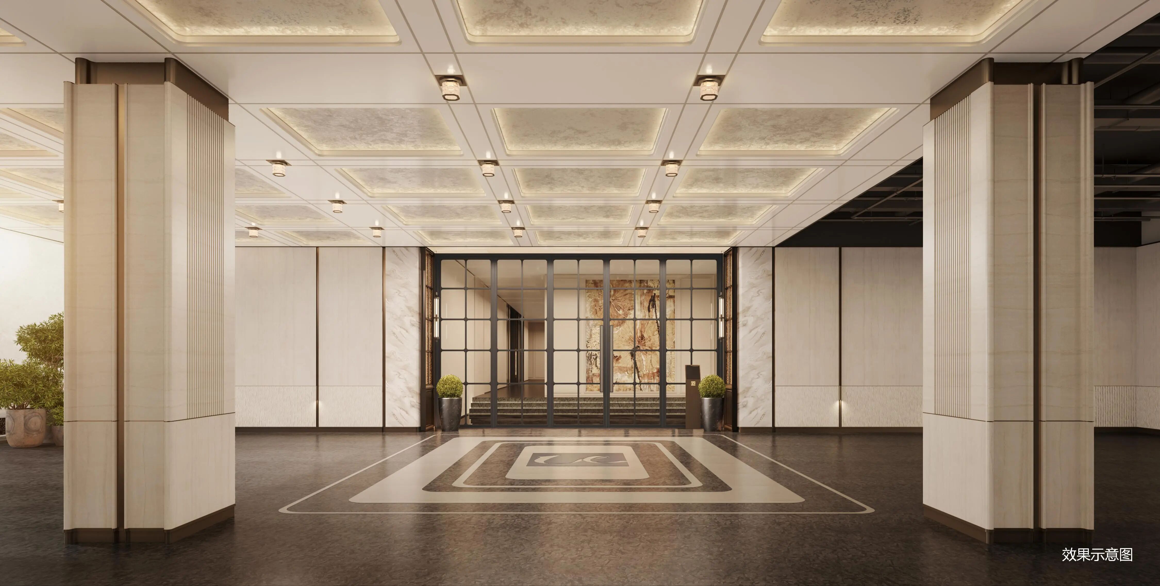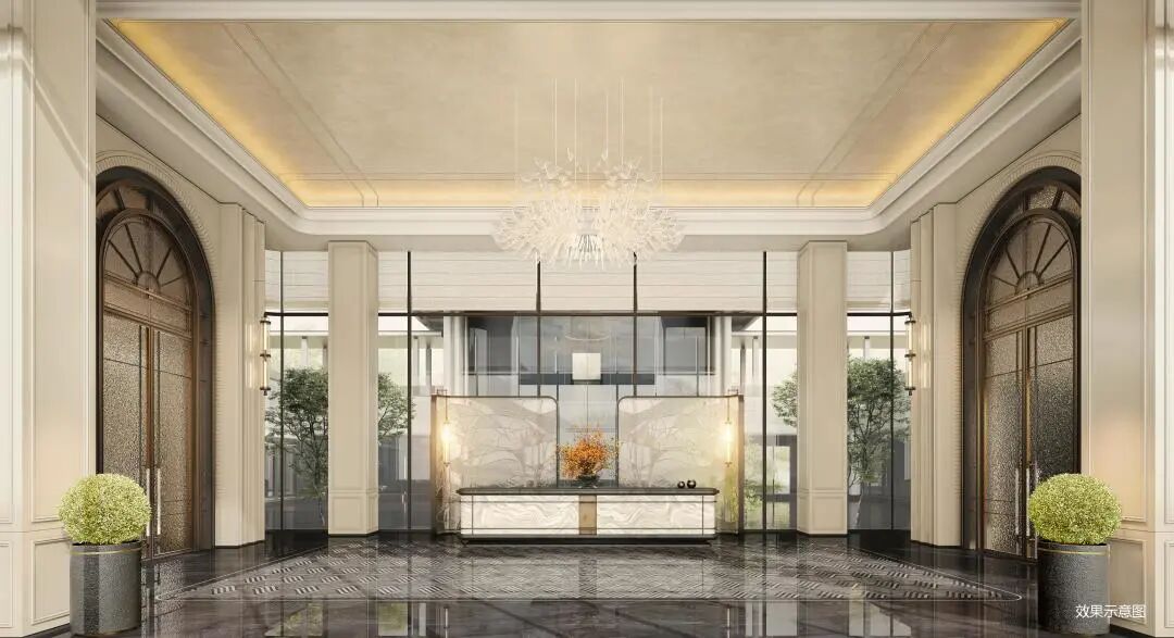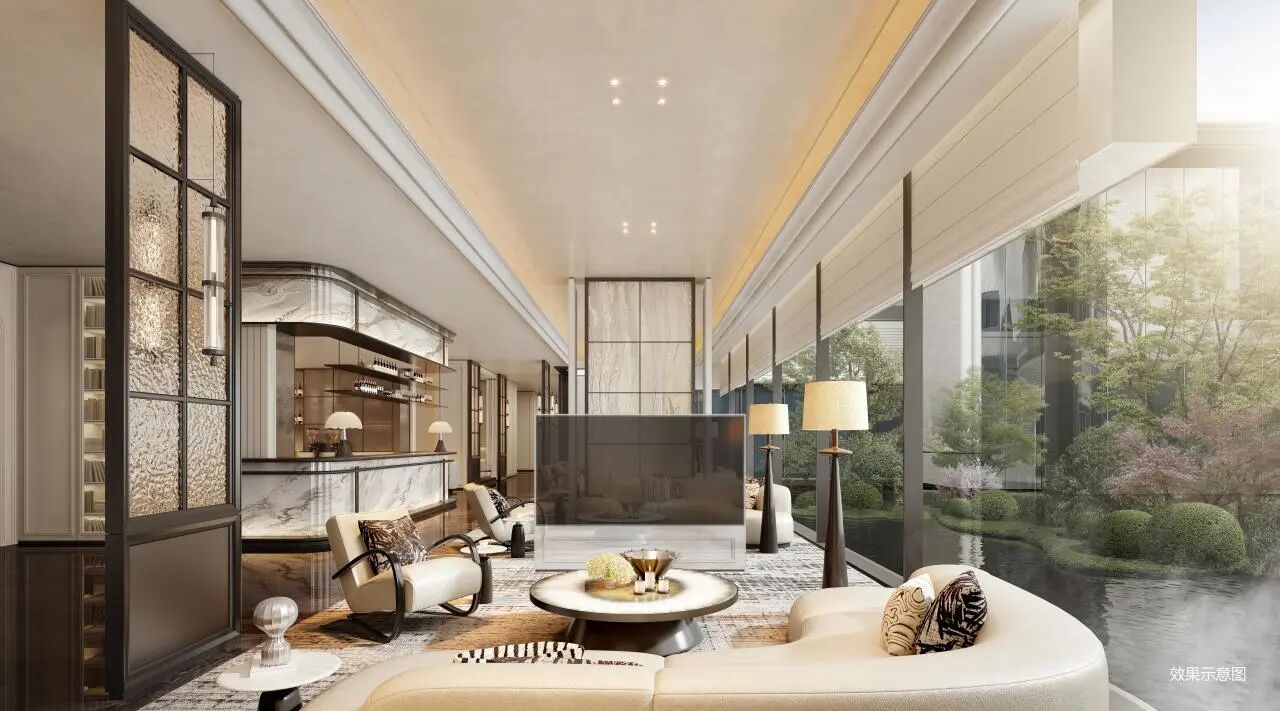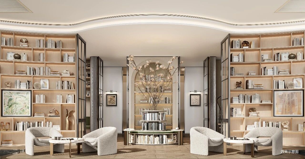社区景观大门以超宽面幅和大尺度挑檐构建极具张力的空间场域;下沉式会所集合中央水院、亲水平台、健身房及双层水幕浮岛书屋实用场景;泛会所涵纳儿童、青年、长者全龄活动需求,让公共空间真正成为社区生活的延伸。