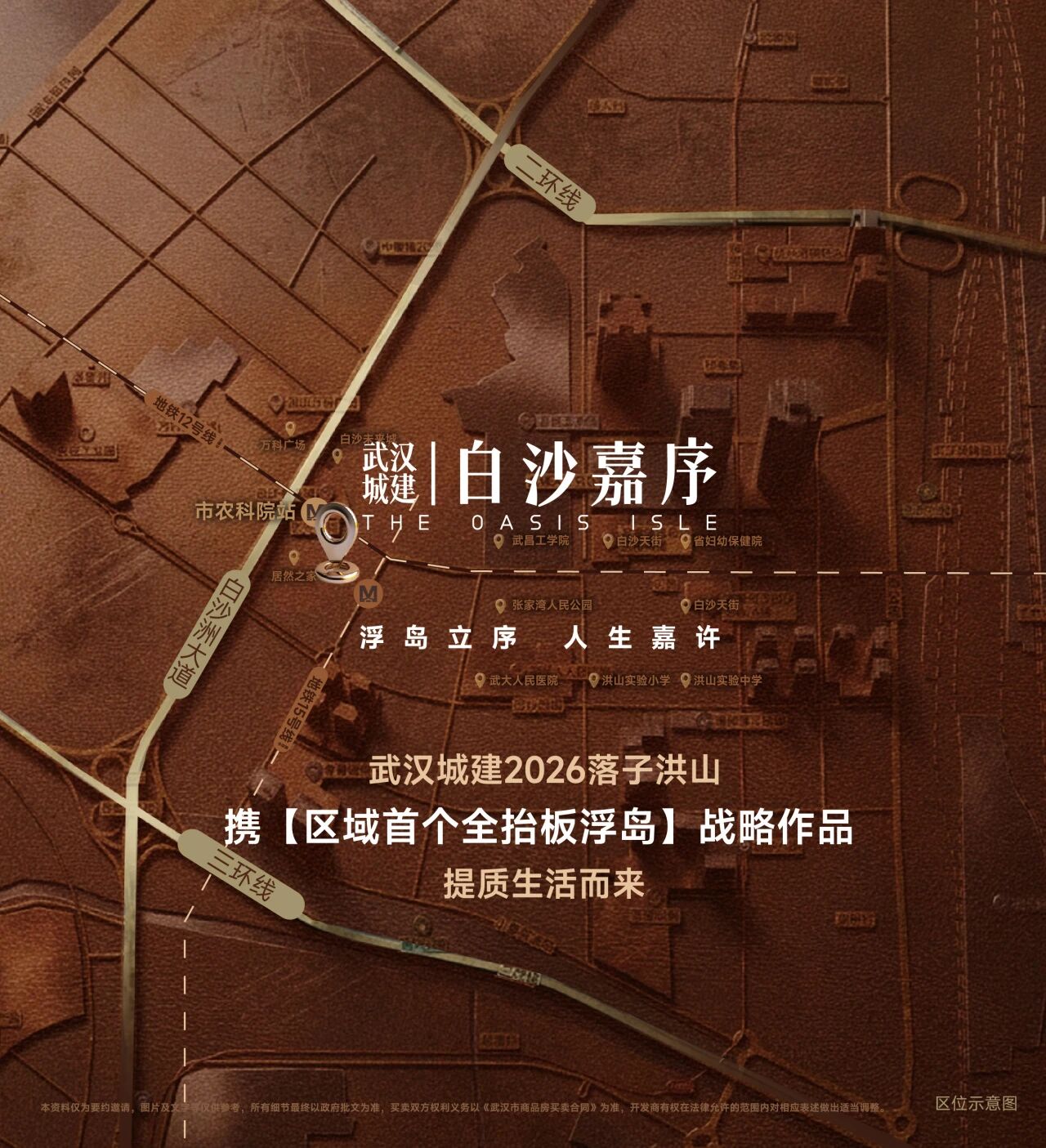 本资料仅为要约邀请,图片及文字等仅供参考。对项目周边交通和环境的描述仅为提供相关信息,不意味着本公司对此作出承诺,所有细节最终以政府批文为准。买卖双方权利义务以双方签订的《武汉市商品房买卖合同》及其附件等书面内容为准,开发商有权在法律允许的范围内对相应表述做出适当调整。开发商:武汉城建白沙置业有限公司。广告发布时间2026年4月,敬请留意最新资料。